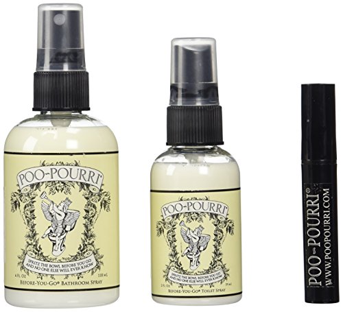 Studio : Poo-Pourri Publisher : Poo-Pourri Binding : Health and Beauty Product Description Poo-Pourri Original scent set is great to have on hand or for a gift. Spritz the bowl before you go and no one else will ever know with these great items. This blend of natural essential oils will create a barrier to embarrassing bathroom odor. Contains no parabens or phthalates. 0