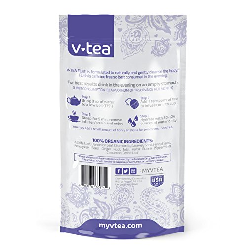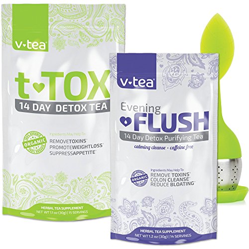-. Binding : Health and Beauty -. Brand : v tea -. EAN : 0600978689698 -. Feature : FLUSH DETOX TEA BENEFITS - Proprietary herbal blend helps reduce bloating to achieve a flatter tummy - Gentle cleansing tea helps remove toxins and build up from digestive system and promotes weight loss. / TEATOX CLEANSE YOUR BODY - Feel healthier and look younger - say goodbye to nasty toxins - boost energy and increase metabolism - many notice their skin and complexion also improve. / DELICIOUS TASTING LOOSE LEAF TEA - 100% organic tea blended fresh in small batches for unsurpassed quality and a natural herbal flavor - you'll love these teas! / PREMIUM QUALITY MADE IN THE USA - This great tasting natural detox tea is unlike other - two-part system focuses on detoxifying and digestion. Morning blend will help purify your system and increase liver function -Nightime Flush will restore gut health and stimulate a gentle laxative effect. / 100% SATISFACTION GUARANTEE - v•tea stands behind its products with a full refund or replacement anytime - NO QUESTIONS ASKED -. IsAdultProduct : 0 -. Label : VLIFE BRANDS LLC -. Manufacturer : VLIFE BRANDS LLC -. MPN : flush1 -. PackageQuantity : 1 -. PartNumber : flush1 -. ProductGroup : Health and Beauty -. ProductTypeName : HEALTH_PERSONAL_CARE -. Publisher : VLIFE BRANDS LLC -. Size : 14 Day -. Studio : VLIFE BRANDS LLC -. Title : v tea Advanced Teatox Cleanse + Flush 14 Day Detox Tea - 28 Servings: Bloating - Weight Loss - Digestion - Gut Health | 100% Organic + Tea Infuser -. UPC : 600978689698