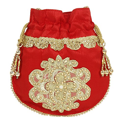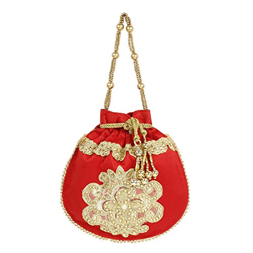 (Purse Collection)/Accessories/Handbags/DIRECT FROM USA/Purse Collection Floral Shape Beautiful Drawstring Red Colour Potli Purse For Womens