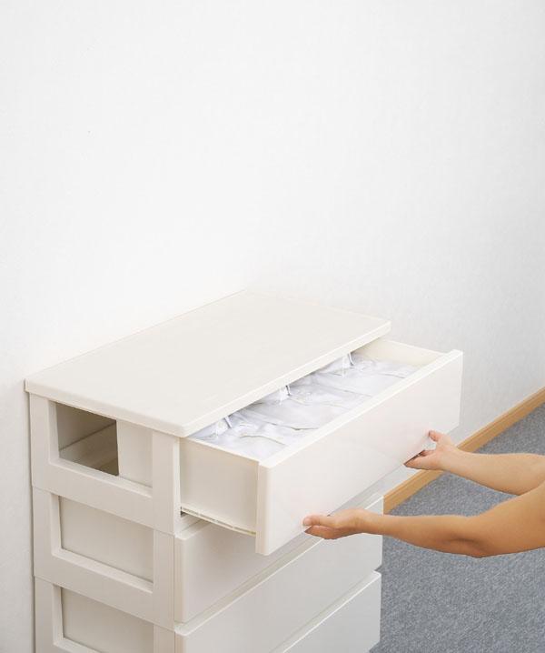 | 素材・材質 | 外天板・引出し・本体枠・脚:ポリプロピレン 内天板・フロントパネル:ポリスチレン 補強バー:ステンレス鋼(SUS430) ローラー部分:POM樹脂、スチール ネジ:スチール スベリ止め:ウレタンフォーム |