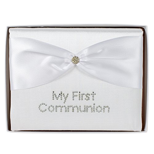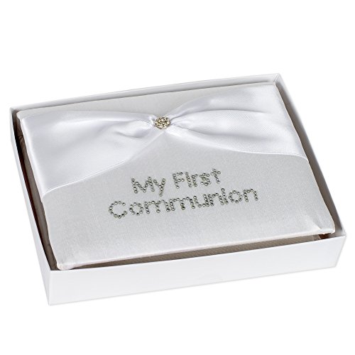White Silk "My First Communion" Photo Album With Crystal Button