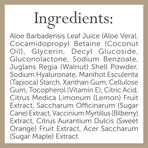 SCRUB: A mix of natural fruit acids and finely ground walnut shell, this gentle scrub melts away dead skin to reveal the glow underneath. Soothing aloe joins refreshing citrus to bring your skin back to life. Kick the harsh scrubs to the curb and allow your skin to feel softer and smoother than ever before with our natural and organic, pH balanced formula.