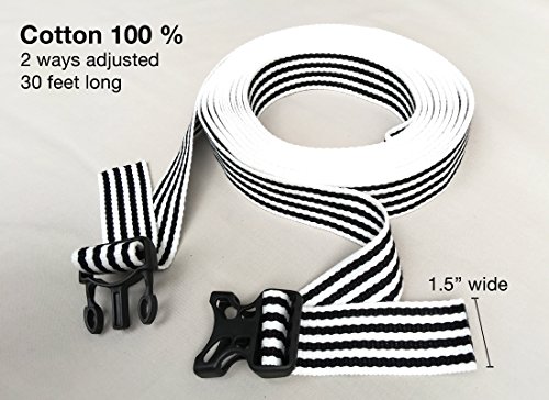 -. Brand : 333 World -. Feature : Quantity : Set of 1 per package with Long 30 ft Strap for holding together two XL twins to create a King bed. / Quality : COTTON 100% with High Heavy Duty Quality and Strong Webbing Straps make for secure twin-to-king bed conversions / Designs : With 2 Ways Adjustable , make you so easy to wrap this around the two mattresses. / Purpose : Keep the mattresses from sliding apart when we came across this bed strap. Attaching two twin mattresses together to make a king size mattress. / Dimension : Width 1.5 inches (4 cms) / Long 30 ft Strap for holding together two XL twins to create a King bed. -. PackageQuantity : 1 -. ProductGroup : Home -. ProductTypeName : HOME_BED_AND_BATH -. Size : 30 ft -. Title : BED SUSPENDER 30 ft. (360 inches) Width 1.5 inches (4 cms) COTTON 100% / Twin to King Mattress Connecting Strap/Twin Mattress Securing Bed Strap /Twin Bed Connector/Bed Bridge With Adjusting Safety Strap.