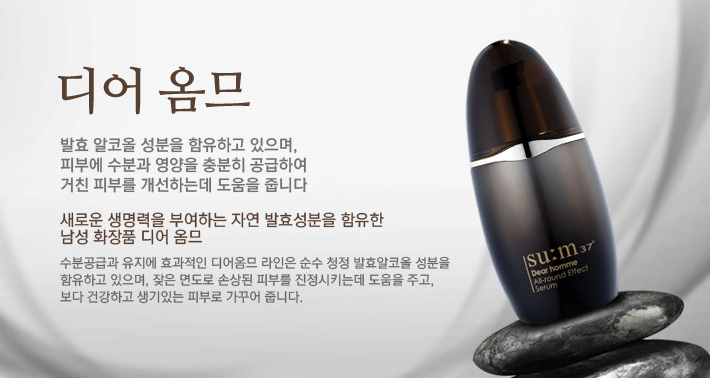 | SPE50+, PA+++ [Sun screen, wrinkle erasement cosmeceutical] *This is a male suncreen, which is not sticky or glossy, but rather it provides soft and light texture. *It provides effective sunscreen effects not only for everyday activities but also for leisure activities. *This wrinkle erasement cosmeceutical animates male skin with much firmness and protects it from UV rays. |