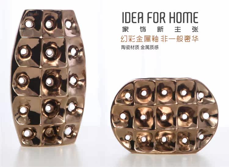 | Metal glaze glaze ceramic industry is a special artistic glaze. The reason why the rich coloration metal glaze and issued metallic luster glaze recipes because of its added metal elements, such as red iron oxide, aluminum phosphate, making it highly glazed hardness, wear resistance, oxidation, corrosion , psychedelic colors increases the vase rich visual experience, the same metal material magnificent effect. | Gold-colored metallic luster glazes, because of the unique art deco effect, much sought after decoration, but because of technical difficulties (by ingredients accurately, the glaze layer thickness, | Kiln firing temperature of the atmosphere and comprehensive constraints), demanding production conditions, very few domestic manufacturers can produce, going home after years of research, with 10 years | Ceramic production experience and technology, was able to produce this series of metal glaze ceramic decorative ornaments. Metal Glaze product was originally designed for U.S. orders and production, in view of the domestic market | Field on the metal glaze demand and market different, the original U.S. design made relevant changes, the final production of "Symphony Metal Glaze - pleasing series of non-general extravagance | China " |