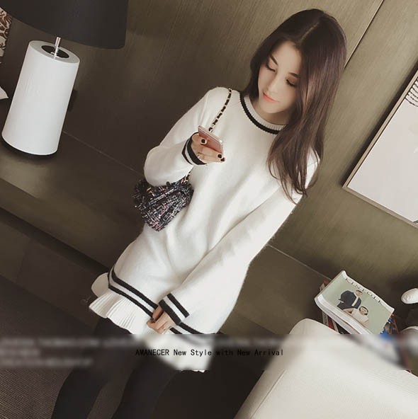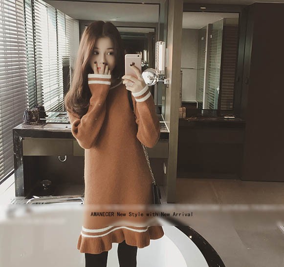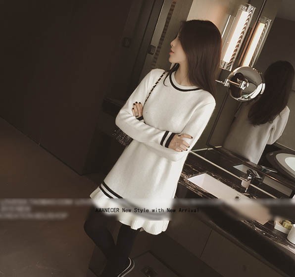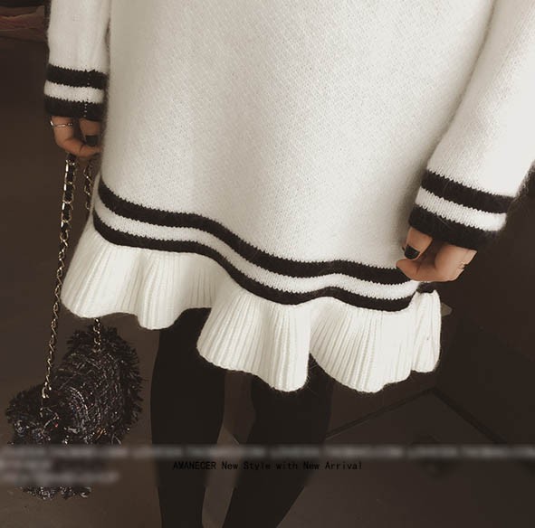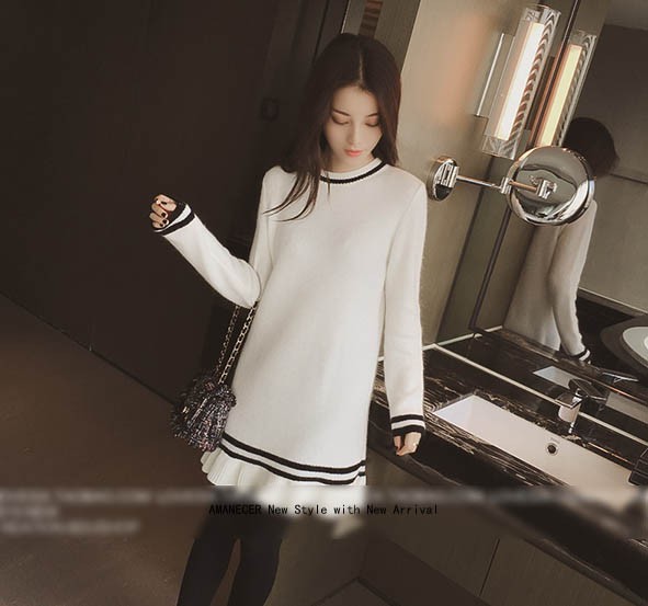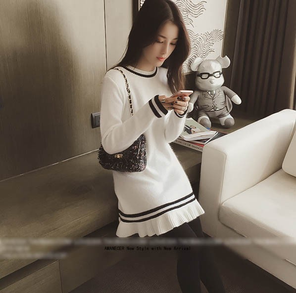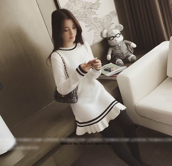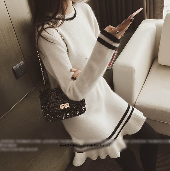 【入荷後営業日2,3日以内出荷予定 通関待ちや不良により出荷遅くなる場合はメールにてご連絡いたします。メール受信設定によっては正常に受信されない場合はございますので、 弊社からのメールを予め受信頂くようご設定くださいませ。】 ワンピ ワンピース ニットワンピ ニットワンピース ボーダーワンピ ボーダーワンピース ボーダー柄 フレア フリル 長袖 ラウンド襟 フェミニン 大人可愛い レディス レディース 春 新作可愛いフレア裾ニットチュニックワンピース◆サイズ:着丈76肩幅39袖丈57胸囲86◆素材:コットン50%+ポリエステル50%