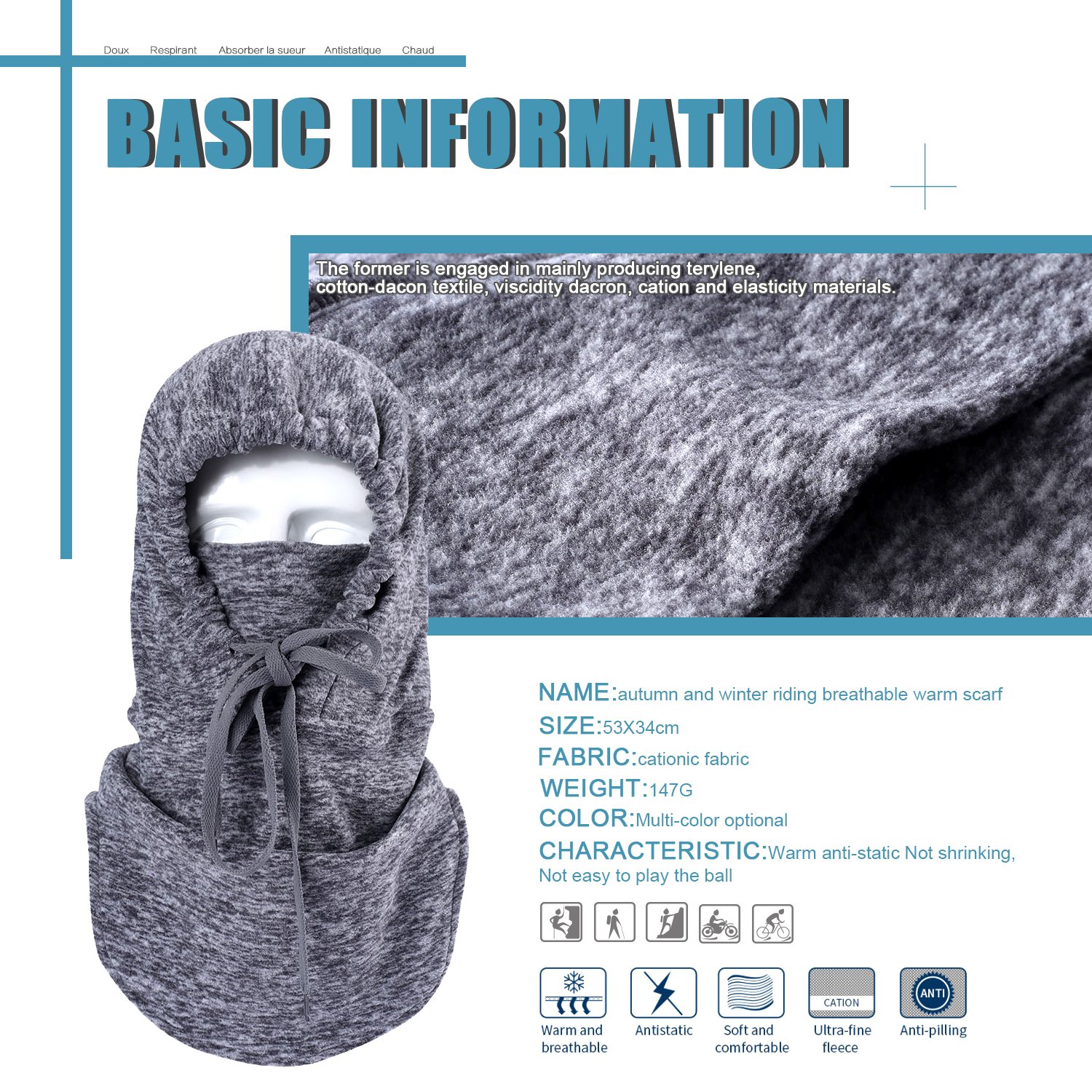 Size 25 cm x 50 cm It covers firmly up to the neck with a fleece material with excellent cold weather and excellent cold weather.