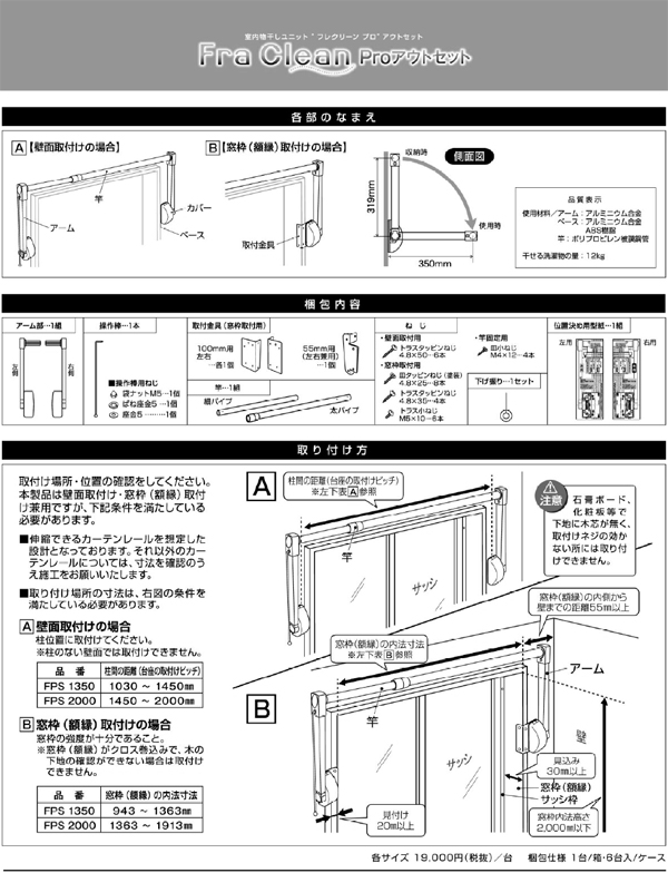 ●サイズ:①壁面取付時【柱間の距離(台座取付ピッチ)】1450~2000 ②窓枠(額縁取付時)【窓枠(額縁)の内寸法】1363~1913