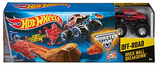 -. Binding : Toy -. Brand : Hot Wheels -. EAN : 0887961030822 -. Feature : Kids will have a blast with this smashing, crashing track set / Send your Monster Jam monster truck tearing down the track with the kid-activated launcher / Bust through the breakaway wall and fly off the "dirt" ramp / Includes one Monster Jam truck for instant action / Get ready for monster mayhem with the Hot Wheels Monster Jam Brick Wall Breakdown! -. IsAdultProduct : 0 -. ItemPartNumber : CCP72 -. Label : Hot Wheels -. Manufacturer : Hot Wheels -. Model : CCP72 -. MPN : CCP72 -. PackageQuantity : 1 -. PartNumber : CCP72 -. ProductGroup : Toy -. ProductTypeName : TOYS_AND_GAMES -. Publisher : Hot Wheels -. Studio : Hot Wheels -. Title : Hot Wheels Monster Jam Brick Wall Breakdown -. UPC : 885639745603 -. Warranty : 1 year warranty against manufacturer defects
