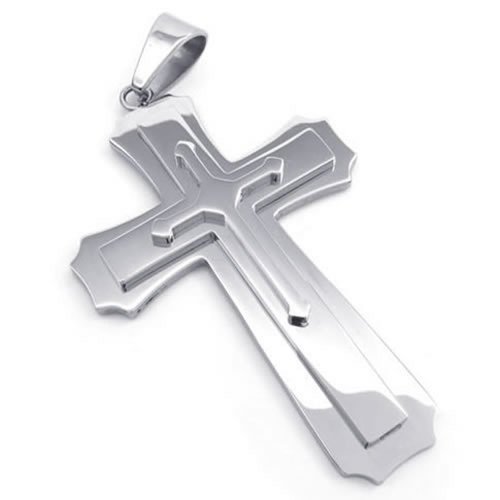 -. Title : KONOV Men's Large Polished Stainless Steel Cross Pendant Necklace, Silver, 24 inch Chain