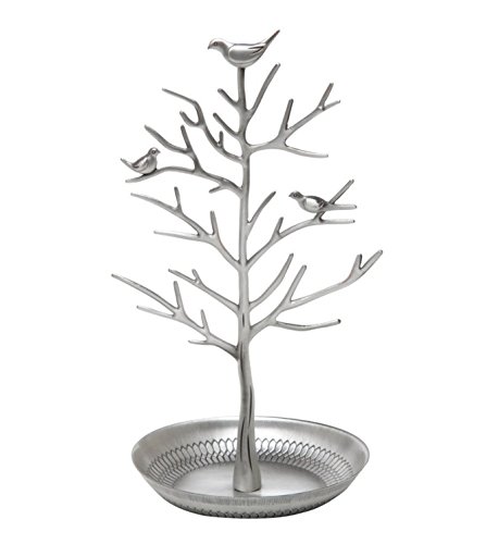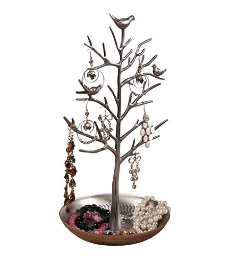 Jqworkland Silver Birds Tree Jewelry Stand Display Earring Necklace Holder Organizer Rack Tower-silver