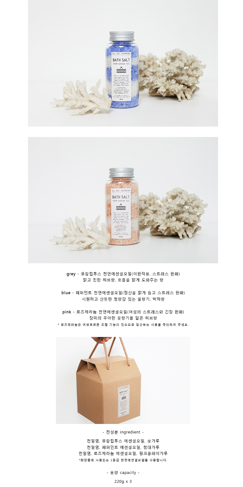 올데이스위밍의 천일염 입욕제 3종세트 입니다.