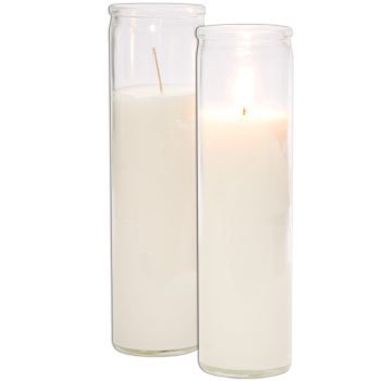 2 CLASSIC WHITE CANDLES IN GLASS, 8-INCHES TALL