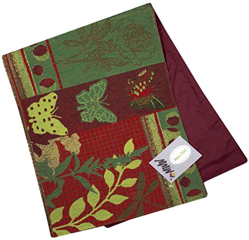 - Manual Amber Forest Dragonfly Butterfly Fern Lined Tapestry Tablerunner, in beautiful shades of Green, Red, Rust, Brown and Burgundy