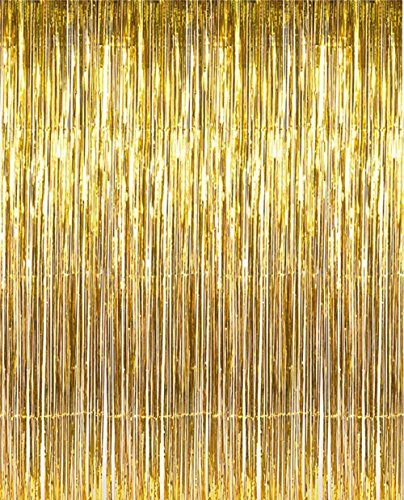 3 ft x 8 ft Metallic Gold Foil Fringe For Door, Window, Curtain, Wall Decoration - Party, Prom, Wedding, Birthday, Event Decorations