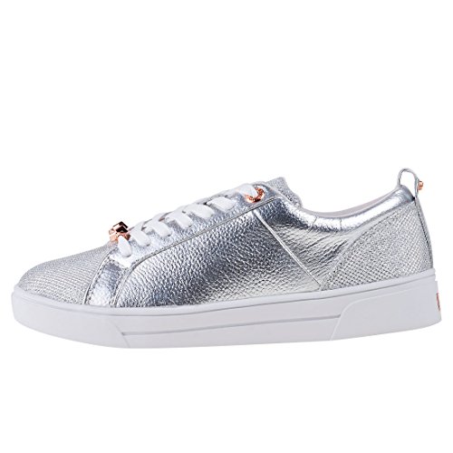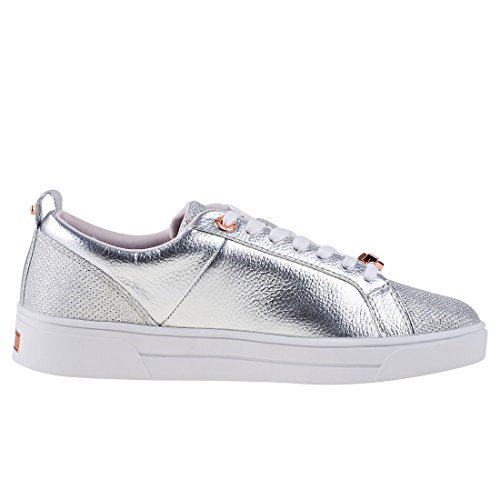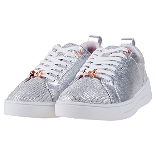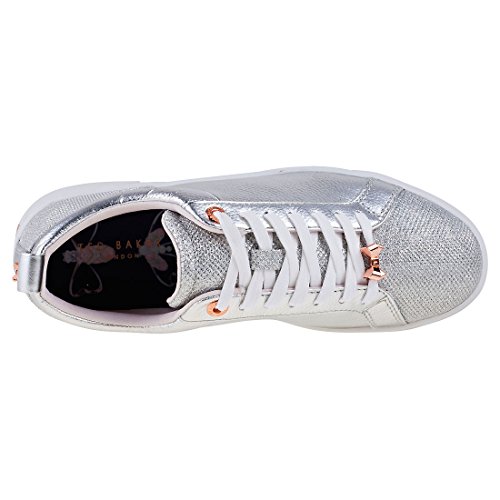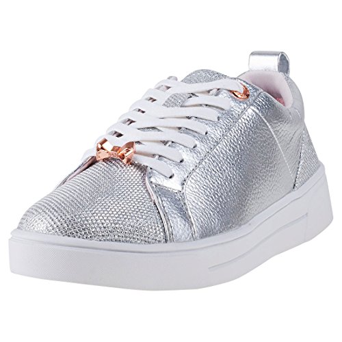 Binding : Apparel Product Description The Womens Kulei Lurex from Ted Baker combines a Leather Synthetic upper with a durable Rubber sole. These Trainers feature Lace-up fastening, cushioned insole and Textile lining. Finished with Ted Baker branding, the style 9-16817 comes in a Silver colourway. 0