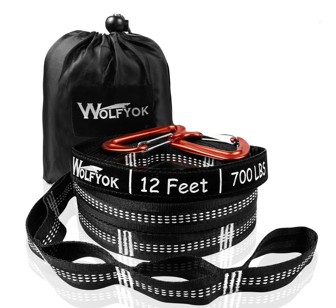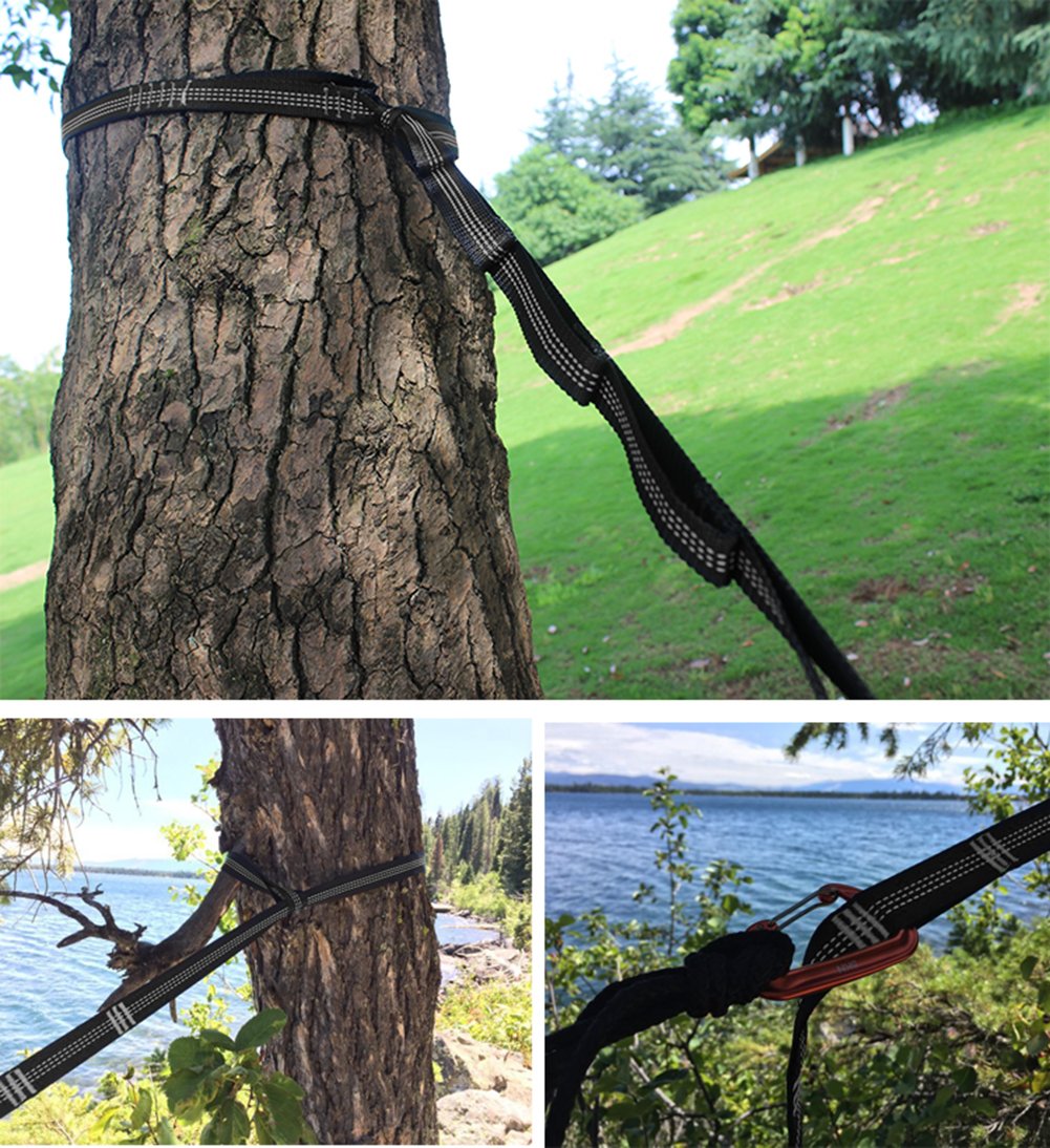 ハンモック用ベルトの材質:1000D高強度ポリエステル;サイズ:幅2.50cm 長さ365cm 厚さ2mm;ノード:20個;重さ:525g;耐荷重量:650kg(約);
