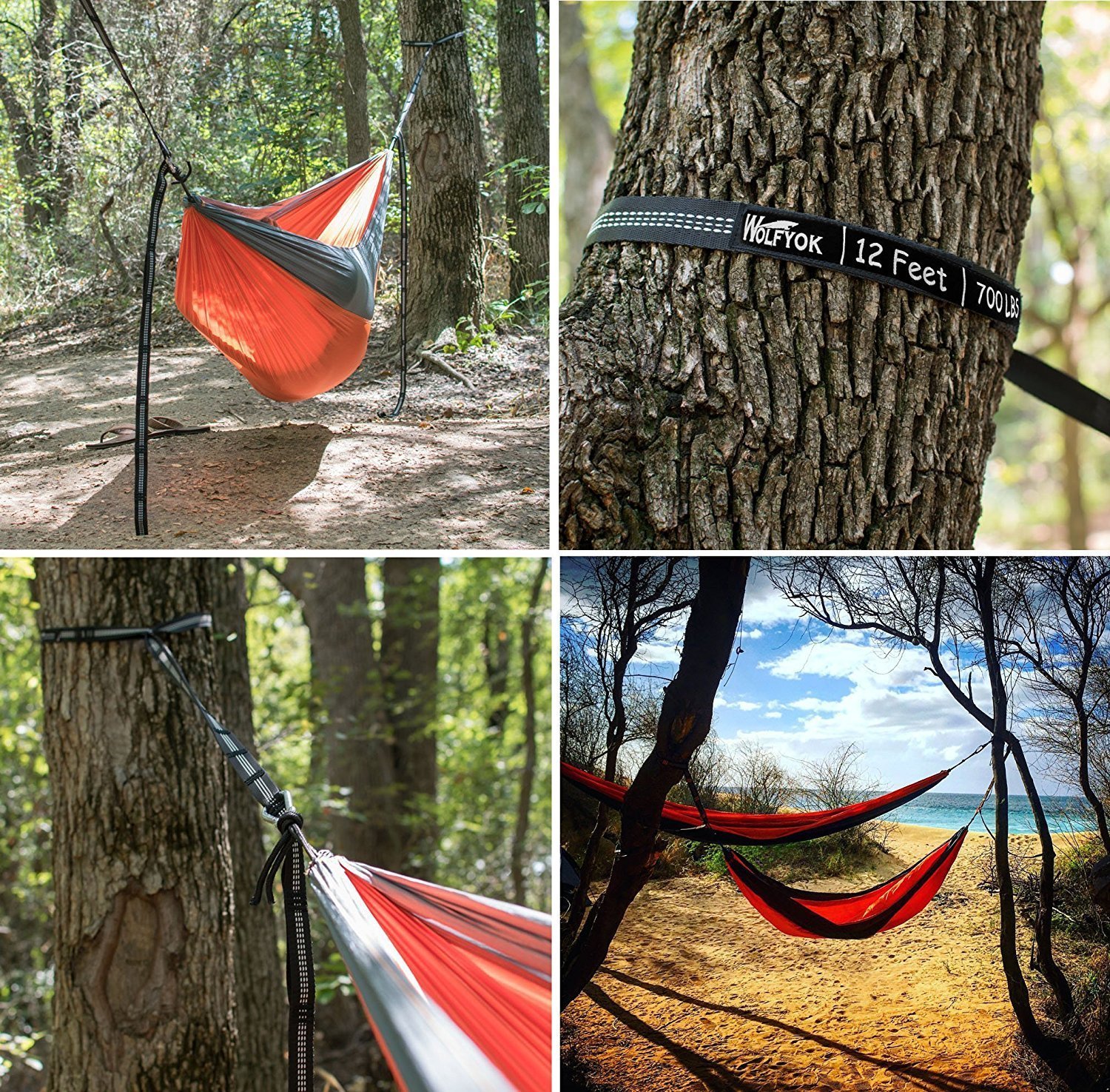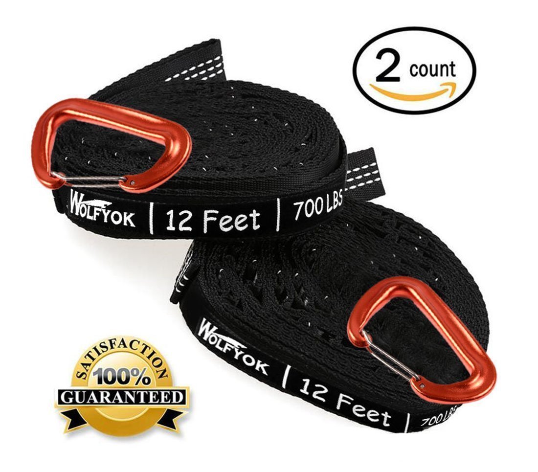 ハンモック用ベルトは使用簡単で楽になる:ハンモックとのとりつけも簡単でロープの端がわっかになっているので簡単に木のサイズに合わせて取り付け、短時間でハンモックを張ることができます。
