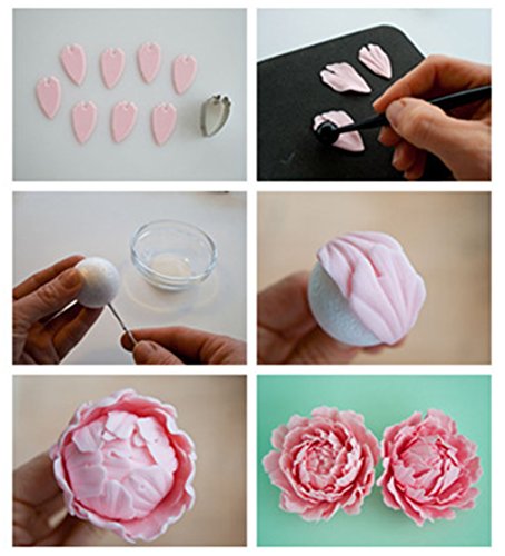 To create the peony as illustrated,the use of petal paste/Gum paste is recommended.These cutters can also be used to create a variety of cut out designs and fantasy flowers using a range of Edible and Non-Edible materials