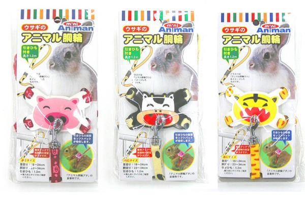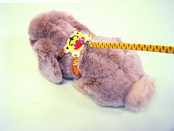 | 骨格が小さいウサギのからだに優しくフィットする背中のソフトパット。アニマル柄のキャラクターが楽しいウサギ専用の胴輪です。 |