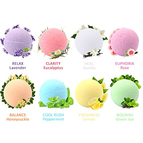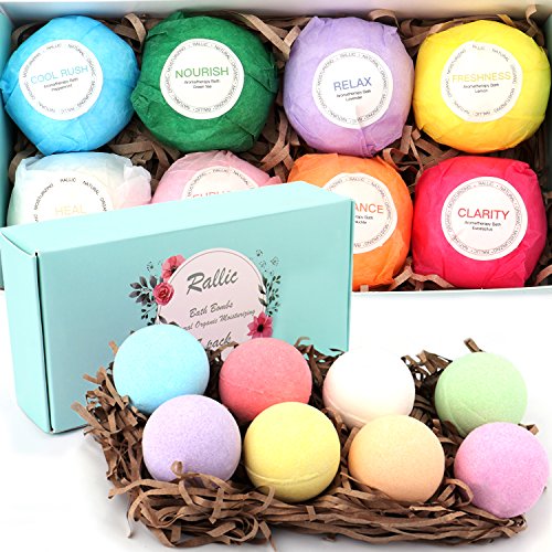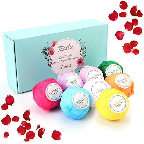 Rallic Bath Bombs Gift Set - 8 Pack of Ultra Lush Spa Bath Fizzies with Organic & Natural Ingredients for Moisturizing Dry Skin - A Unique Present for Relaxation