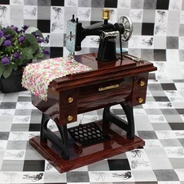 -. Feature : Vintage Mini Sewing Machine Mechanical Music Box Birthday Gift by Completestore