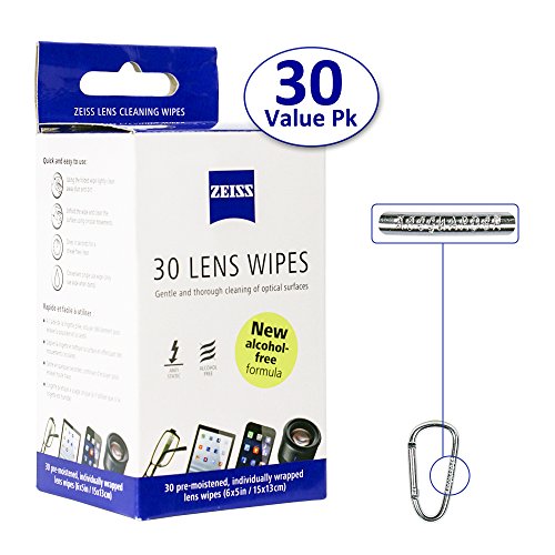 Feature : NEWEST: Zeiss 2016 Newest Cleaning Wipes, Alcohol free formula. Anti static, Gentle and thorough cleaning of optical surfaces. OPTICS WIPES: Wipes designed to clean all lenses like sunglasses and eyeglasses. / SAFE AND EFFECTIVE: Pre-Moistened lint wipes that provide thorough cleaning from all kinds of dirt gently by removing bacteria, germs, fingerprints, dust, oil, and smudges. / LENS CLEANER: Does not contain artificial fragrances, safely prevent streaks and bacteria from spreading on eyeglasses and sunglasses. / STREAK AND SCRATCH-FREE: Non-abrasive, antistatic micro-fine tissue cleaning wipes that leave zero scratches, streaks or marks on eyeglass lenses. CONVENIENCE: Disposable pre-moistened wipes make it quick and easy to safely clean optics lenses. / Zeiss officially authorized Amazon seller, 100% new original. Package also includes one our own unique "ACEGUARDER" outdoor Carabiner as free gift.