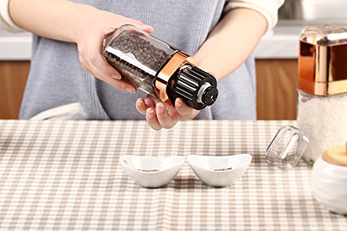 Youlixuess High Grips Glass Salt or Pepper Grinder, Glass Body Seasoning Bottle Gourmet Precision Mechanism and Premium Peppercorns