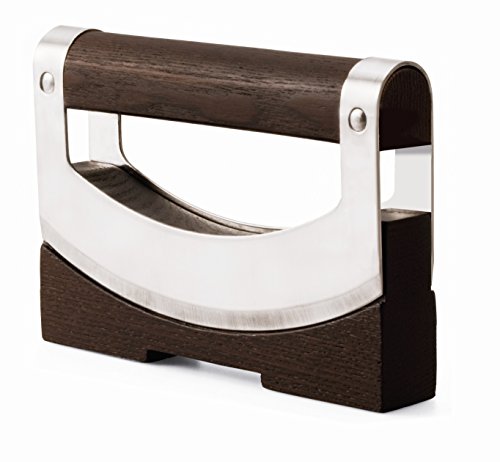 Legnoart Dondola Stainless Steel and Wood Mezzaluna Chopper/Mincer with Rocky Knife, Brown