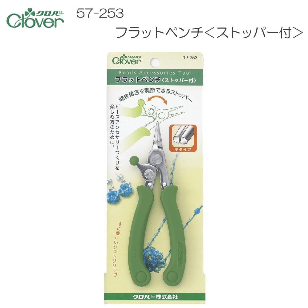 ビーズアクセサリーを楽しむ方のために。開き具合をストッパーで設定すると、繊細な作業がラクにできます。 製造国:日本 素材・材質:本体:ステンレス鋼樹脂部:エラストマー 商品サイズ:全長:約135mm ※サプライヤー直送品 ご注文後3~4営業日後の出荷となります【商品名】クロバー フラットペンチ(ストッパー付) 57-253