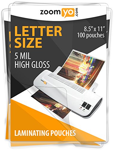 zoomyo Laminating Sheets Letter Size 8.9 x 11.4 inches, 5 mil thick, gloss, 100 sheets per pack