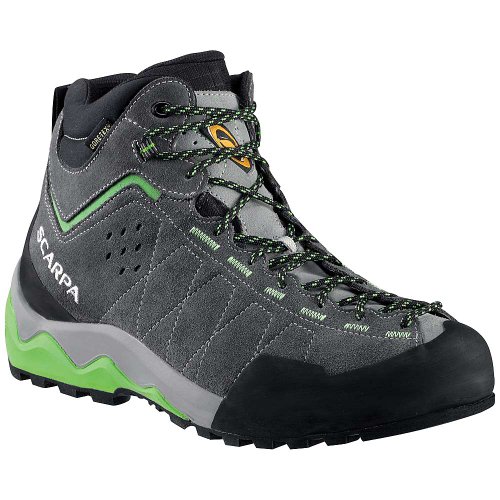 This mid-cut approach shoe is inspired by the very specific demands of mountain guides. More supportive than a traditional low top approach shoe, the Tech Ascent is surprisingly light and nimble on technical terrain, which is critical when shouldering a heavy load on fifth-class terrain. The dual-density polyurethane midsole provides substantial shock absorption but still retains its sensitivity to climb well. Asymmetrical lacing to the toe provides precise fit and enhances stability when climbing. Abrasion resistant suede uppers, Gore-Tex waterproof breathability, and sticky rubber round out the Tech Ascent’s attributes.Feature