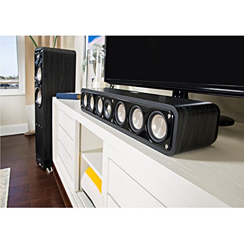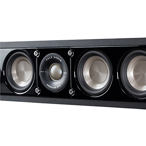 -. Feature : 4"-Tall slim profile fits spaces that other center channels do not / (1) 1" high-resolution terylene tweeter for crystal clear high frequency response that perfectly reproduces the latest high resolution Audio files / (6) 3" low distortion mica-reinforced polypropylene cones for clean, clear bass, better linearity, and increased dynamic mid-range / Exclusive Polk dual power port technology for greater, more impactful bass / Compatible as left, center or right Channel speaker (L/C/R)