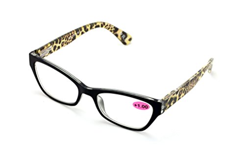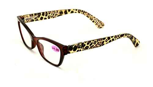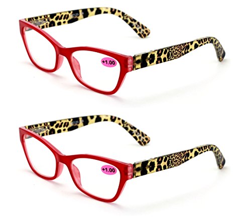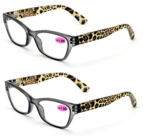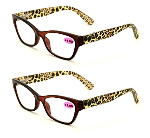 2 Pairs of Stylish Classic Rectangle Cateye Reader With Spring Hinges, Women Female Leopard Tem...
