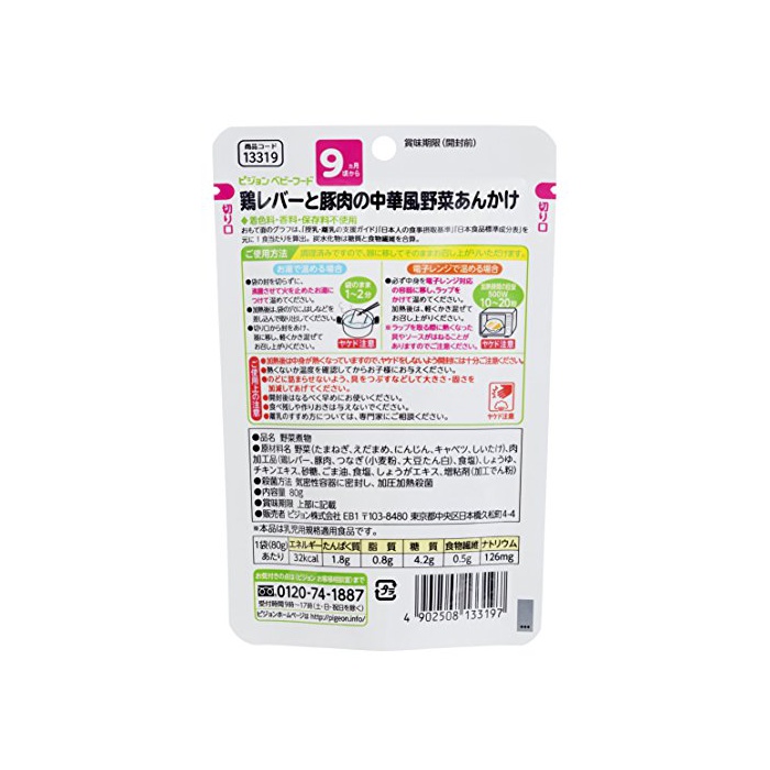 원본상품명: ピジョン 管理?養士さんのおいしいレシピ ?レバ?と豚肉の中華風野菜あんかけ 80g×12個