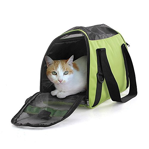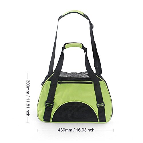 -. Feature : •AIRLINE APPROVED PET CARRIER: Our 17" (L) X 7"8 (W) x 11"4 (H) FAA approved dog and cat carrier easily fits under airplane seats of American Airlines, Delta, Jetblue & any other major airline. / •EMPHASIS ON COMFORT: With mesh ventilation on the sides and top and 2 removable ultra-soft fleece pads, this soft sided pet carrier ensures total comfort for your furry friend. / • SUPERIOR PET SAFETY: We've fitted our pet carriers for small dogs and cats with 2 seat belt buckles for safe car travel, safety buckle zippers, and even reflective strips for night visibility. / •WATERPROOF MATERIAL and REMOVABLE BOTTOM CUSHION: This pet carrier is made of durable, lightweight, waterproof nylon and mesh materials. It comes with a removable pad for comfort and easy cleaning. / •WARRANTY: Pet Carrier comes with a 12 months warranty.