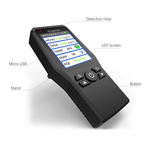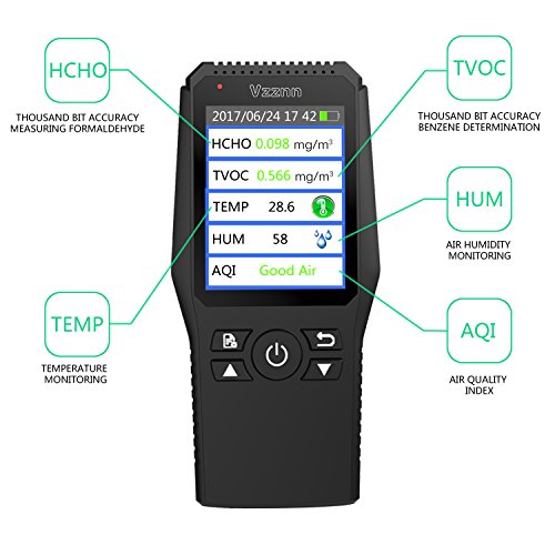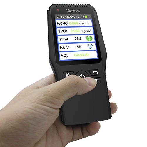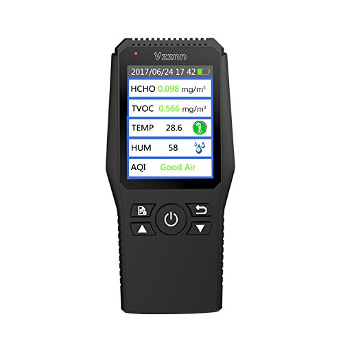 Multi Testers Indoor Air Quality Detector Accurate Testing Formaldehyde(HCHO) Monitor with TEMP/HUM/AQI/TVOC Test Data Logger Detector Air Quality Meter for Car Outdoor Detection by Vzznn