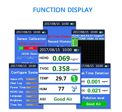 An ideal multi-function testing tool to monitor the air quality, a safeguard for family health.If exceed standard, there will be an alarm prompt.