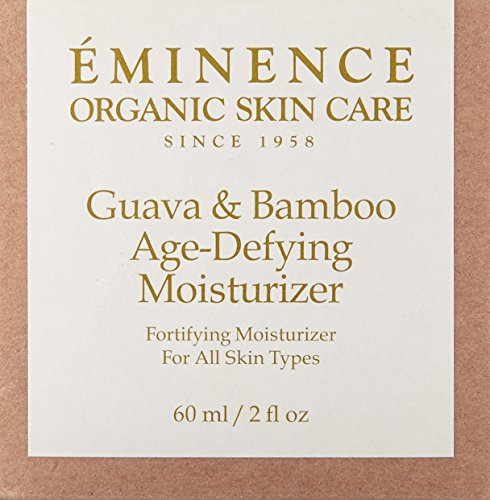 Eminence OrganicsGuava & Bamboo Age-Defying Moisturizer(2 oz./60 ml)Benefits Rejuvenates the skin Boosts skin moisture Ideal for all skin types, especially dry and dehydratedProtects skin from environmental damageFirms and tones the skin Features Guava Juice revitalizes and firms skin Bamboo Leaf Extract is rich in vitamins, protein and antioxidants Corn Germ Oil softens skin Shea Butter hydrates the skin Eminence Organics is a highly effective, entirely organic skin care line. With all naturally organic ingredients these hand-made products are effective and extremely healing. Rich in vitamins, active ingredients and nutrients, Eminence products will give you immediate results that you will see and feel.Feature