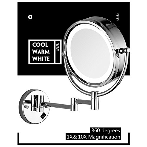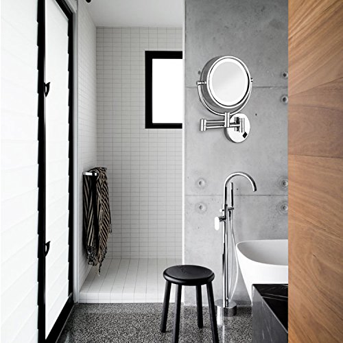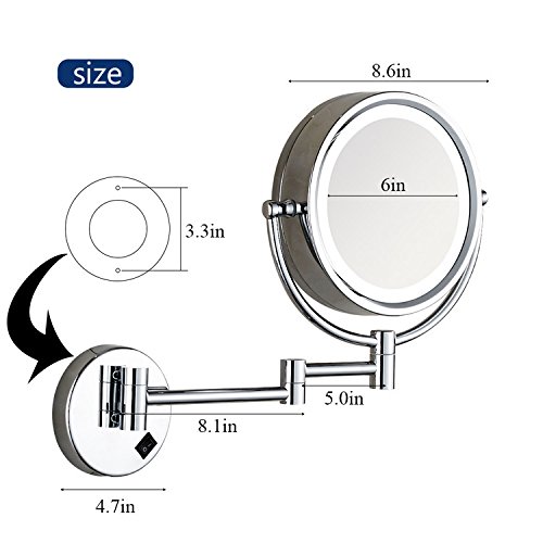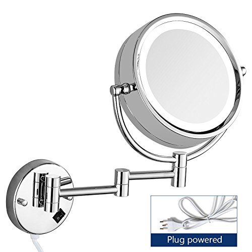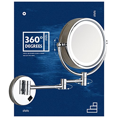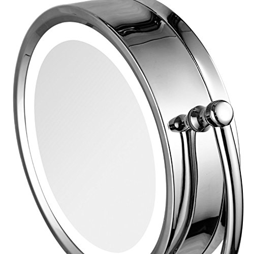 Gecious 10X Magnification Wall Mount Makeup Mirror with Light/LED Lighted/8 inches/Double Sided/Powered by Plug/Chrome finished/Oval Base/360 Swivel