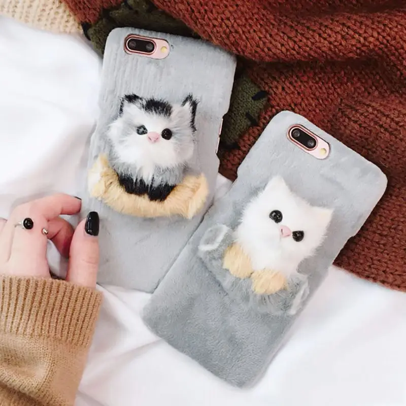Features:Lovely DIY 3D Cat Luxury Cute Furry Warm Phone Cases