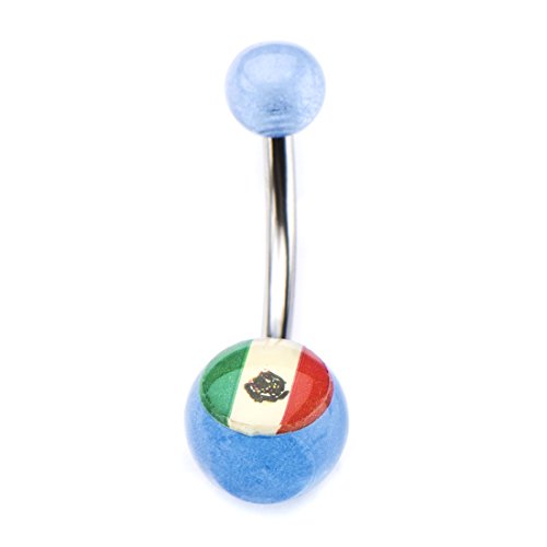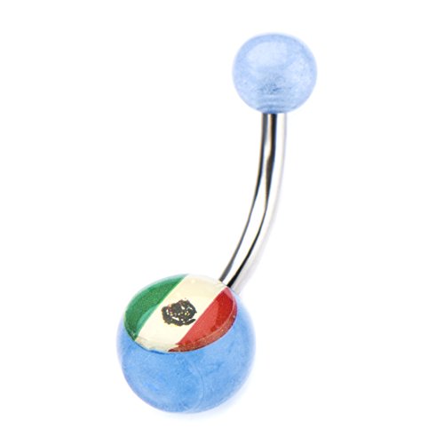(Jewelry Brands)/Accessories/Belts Buckles/DIRECT FROM USA/14g 7/16 Stainless Steel Light Blue Glow Navel with Mexico Flag Logo Fixed Charm