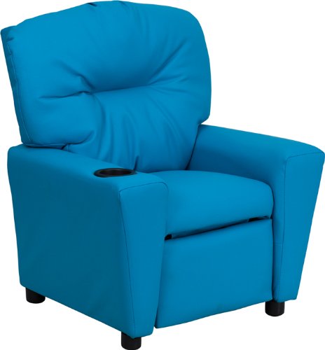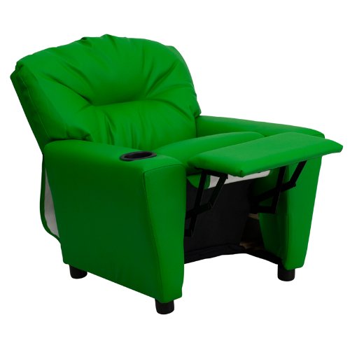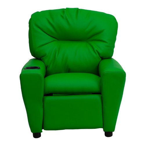 Kids will now be able to enjoy the comfort that adults experience with a comfortable recliner that was made just for them This chair features a strong wood frame with soft foam and then enveloped in durable vinyl upholstery for your active child. Choose from an array of colors that will best suit your child's personality or bedroom. This petite sized recliner will not disappoint with the added cup holder feature in the armrest that is sure to make your child feel like a big kid [BT-7950-KID-GRN-GG].Feature