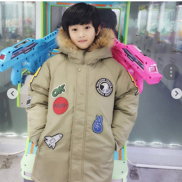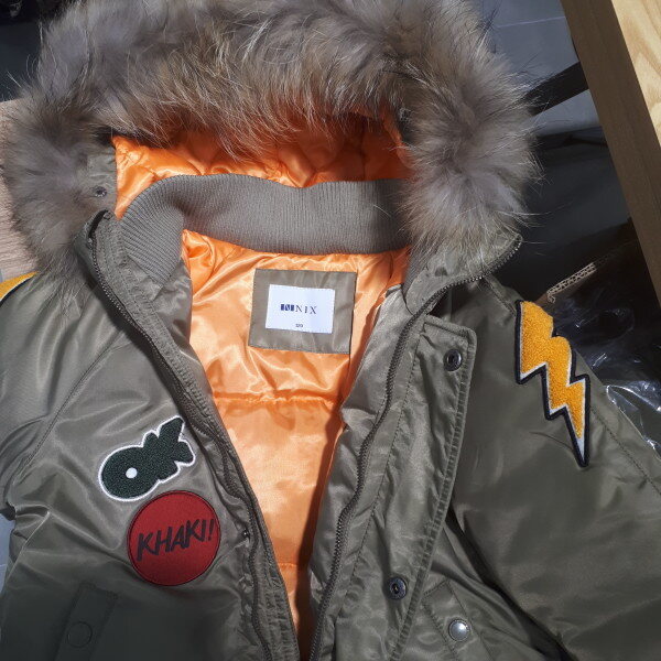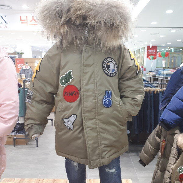 덕다운 충전재를 사용한 아우터로 와펜들이 포인트와 리얼 털 트리밍이 있어 더욱 고급스러운 아우터 ㅡ 퍼 탈착 와펜 다운 점퍼