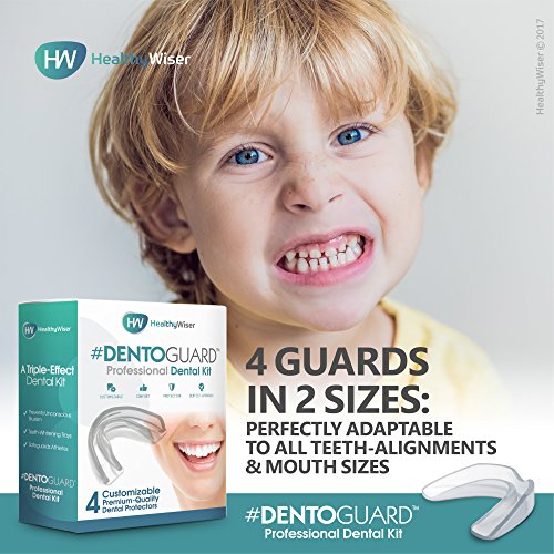 -. Feature : 💙LESS TENSION & LESS PAIN FOR YOURSENSITIVE TEETH!-TheHealthyWiser Dental Guard customizable mouth guardsarehere to help protect your teeth from the symptoms of bruxism and TMJ with its protective and comfortable design. / 💙SLEEP BETTER WITHOUT ANNOYING HEADACHES!-Helpprevent teeth grinding and clenching by choosing our seamless teeth protectors. Their dentist-approved design will help reducethe stress put on your jaw joints and eliminate temporal headaches. / 💙PROTECT YOUR TEETH FROM DAMAGE!-Ideal for all basketball, martial arts, hockey, rugby, football and boxing athletes, the Dental Guard 4 comfortable mouthpieces will help prevent broken or chipped teeth and bruising of the tongue and cheeks. / 💙THE DENTIST-APPROVED SOLUTION FOR ENAMEL PROTECTION!-Our durable mouth guards are extremely easy to clean and can adapt to all teeth alignments. In addition, they are tasteless and odourlessso you can wear them for hours withoutanydiscomfort. / 💙BE HEALTHY & WISER INSTANTLY! -The HealthyWiser Dental Guard customizable teeth protectors are backedby our unconditional, hassle-free full money back guarantee. If you are not 100% satisfied we promise to offer you a prompt and full refund!