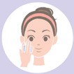 | コットンにたっぷりと化粧水を含ませて、お肌のすみずみまで十分にパッティングします。(下から上に軽く) ※お肌が不安定な時(紫外線を浴びた後の赤くほてった肌を含む)は適量を清潔な手のひらに取って、指先でなじませます。 | ![]() |