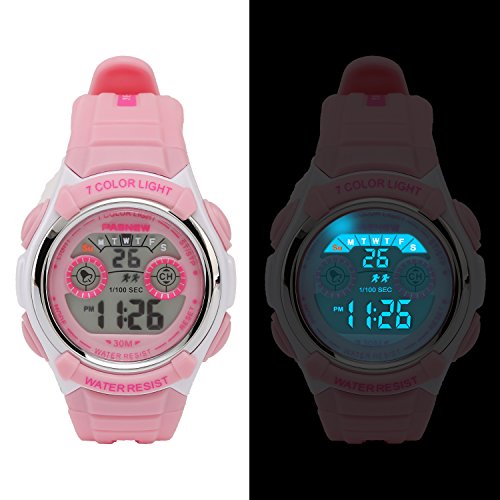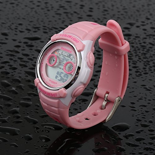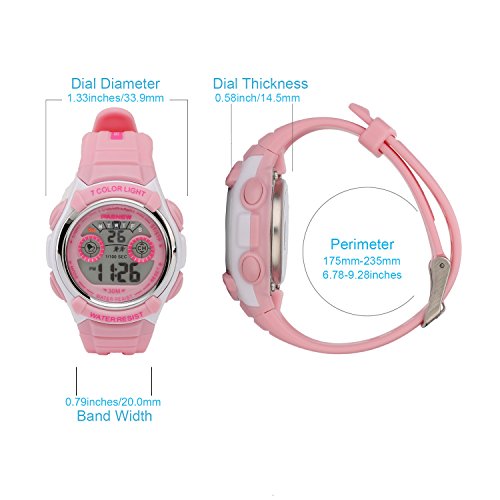 DURABLE & HIGH QUALITY MATERIALS: HOWOD's kids sport watch is manufactured with environmental friendly, high quality materials. It has a stainless steel back and buckle, plus a soft PU strap that ensures comfortable adjustment on a children's wrist with 10 regulation holes and perimeter from 7.2 to 9.3 inches. This is a digital movement watch, 30m water resistant and has a long lasting battery.