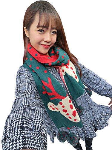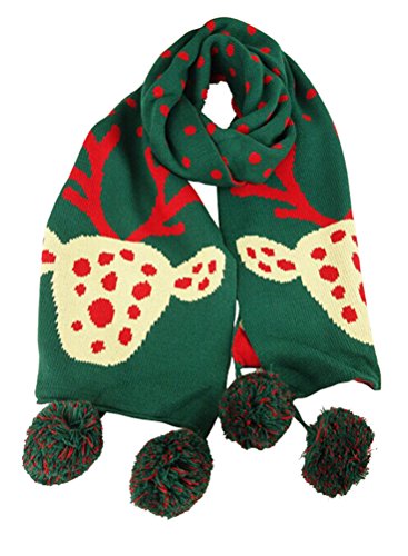 (Bellady)/Accessories/Cold Weather Accessories/DIRECT FROM USA/Women's Lady's Christmas Double Knit Long Scarf with Deer Pattern and Poms