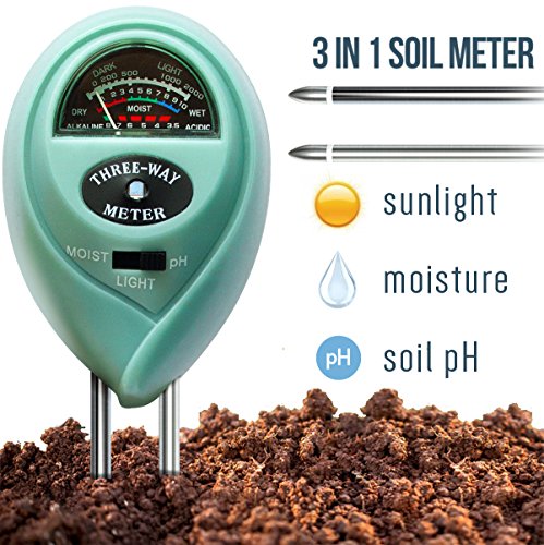-. Feature : SOIL PH TESTER. Helps you measure and control PH level in soil / SOIL MOISTURE METER. Measures moisture content of soil to let you know when to water / SUNLIGHT TESTER. Helps you determine if plants in a particular area of your garden are getting adequate light / NO BATTERY REQUIRED. No batteries or electricity needed, plug and read / PRACTICAL & EASY TO USE! No need or preparation; you simply plug the probe of our soil testing tool in the soil area you want to check and instantly get an accurate and precise readings! Find out what your garden or lawn needs with our soil test kit! Now you know whether you need to water your soil, amend its pH levels or adjust the lighting of your plants!