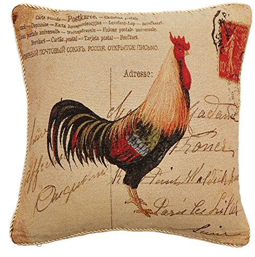 DaDa Bedding CC-15045 Glamorous Rooster Woven Cushion Cover, 18 by 18-Inch, Set of 2